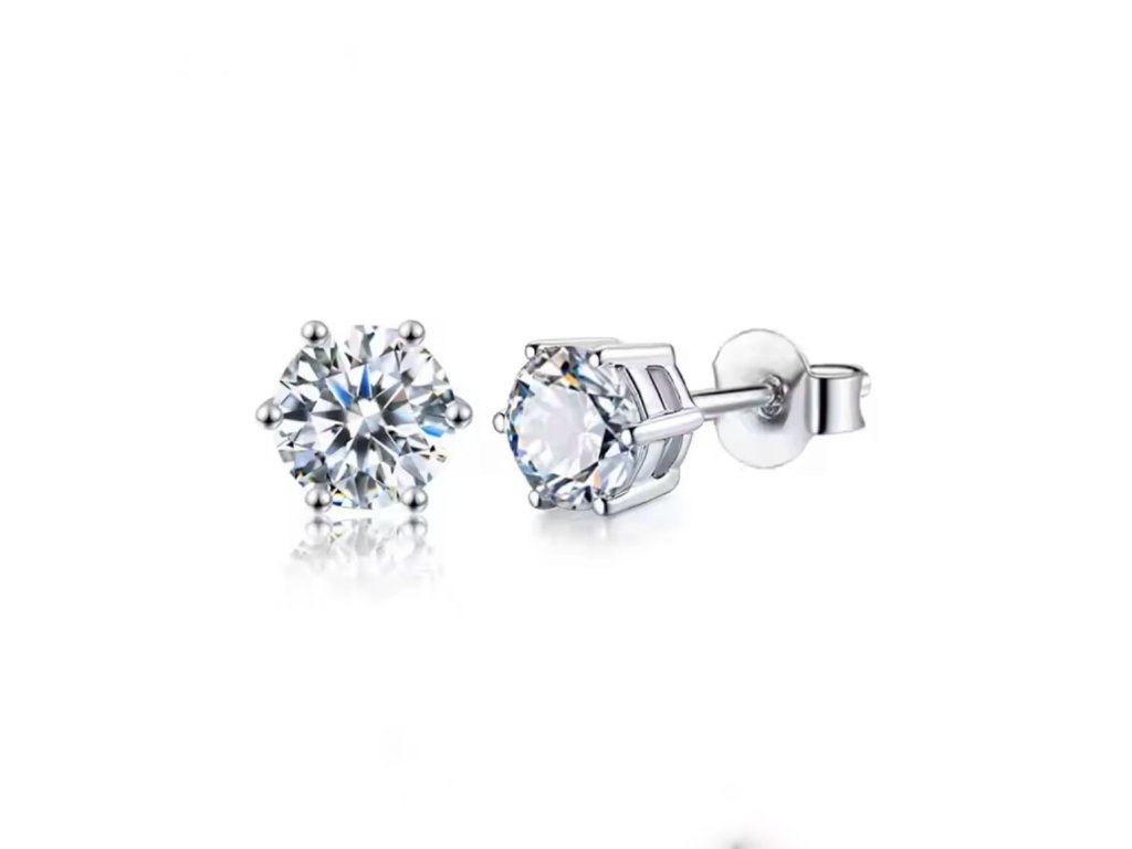 Jednoduché a elegantné moissanitové napichovacie náušnice zdobí okrúhly moissanit s hmotnosťou 0,5 ct, ktorý svojím leskom verne pripomína diamant. Kameň s čistotou VVS1 a farbou D je osadený v klasickom šesťkrapňovom uchytení, ktoré zvýrazňuje jeho brilanciu.