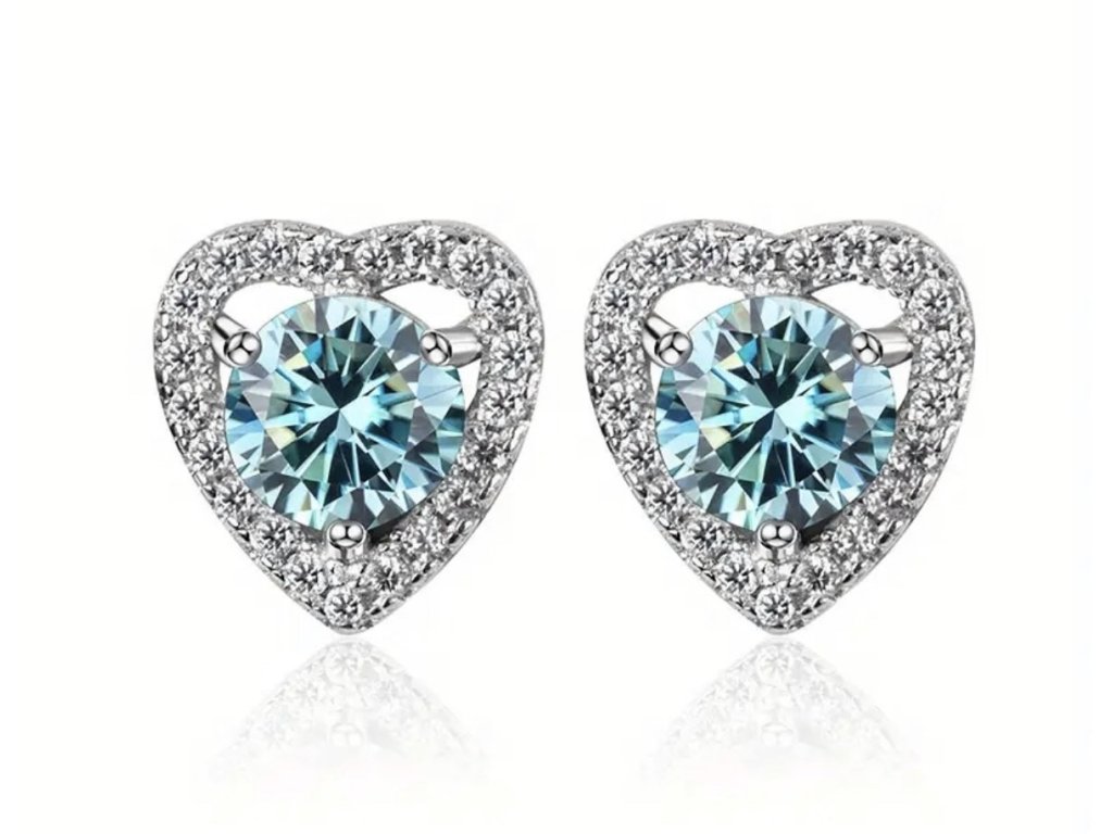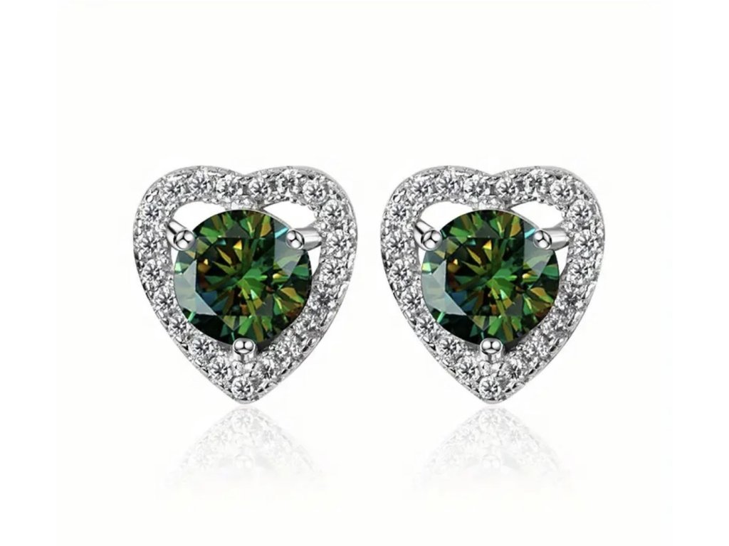 Romantické a žiarivé  srdiečkové náušnice s moissanitom. V ponuke je viac farebných variantov, vďaka čomu si vyberiete presne taký odtieň, ktorý vám pristane.